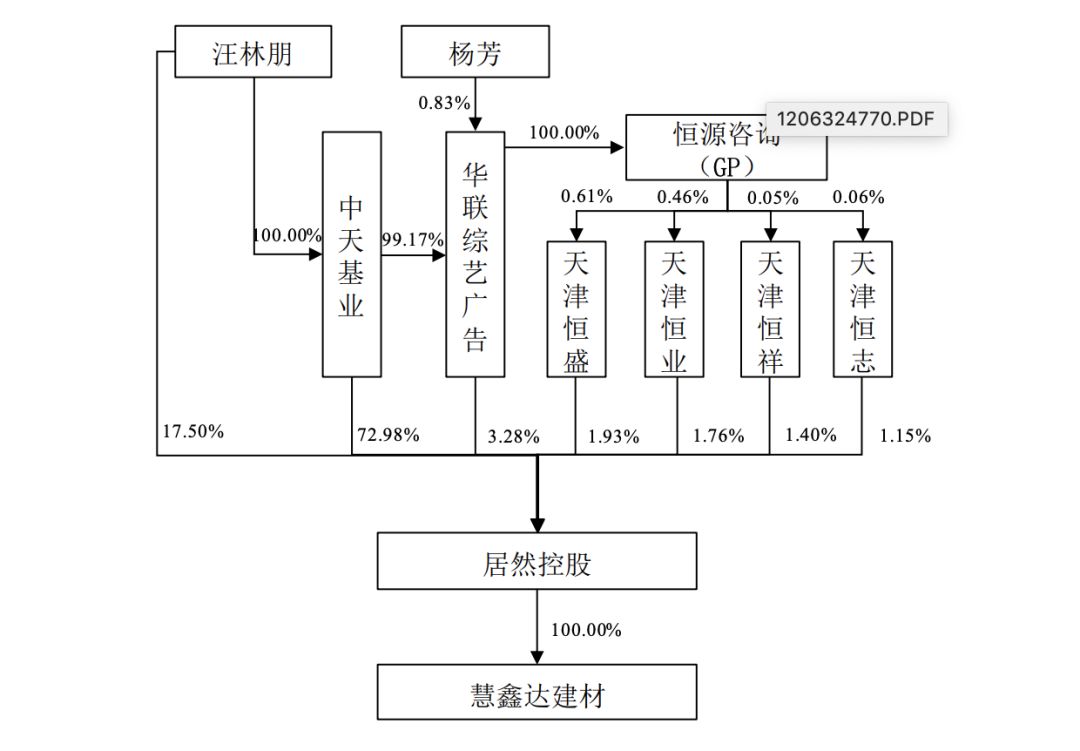 彗鑫达建材产权及控制关系结构图,据官方披露