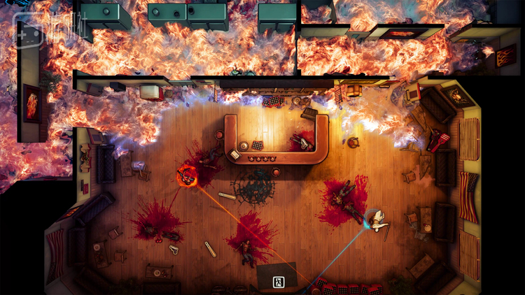 简介: 简单来看是一款俯视角射击游戏,但除了射出子弹和躲避子弹外,玩家还能使用不同的武器技能,组合创造出属于自己的暴力美学,而这一切又能在俯视角下得到精妙展现,下面这张火海中的战斗截图就是个例子。