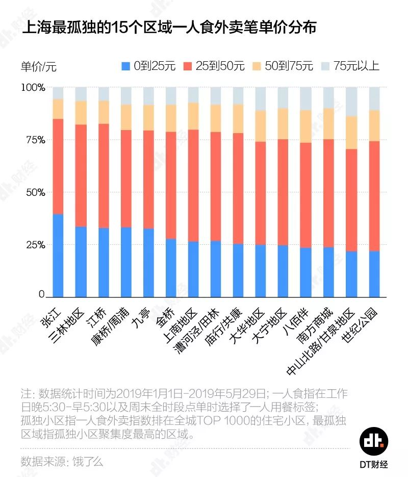 张江引起了我们的注意,住在那儿的小伙伴独自点单时,超过40%的订单价不超过25元,位于各孤独区域之首,高价订单区间更是被全线压制。再考虑到其孤独指数排名也是TOP级别,堪称魔都苦逼之最。