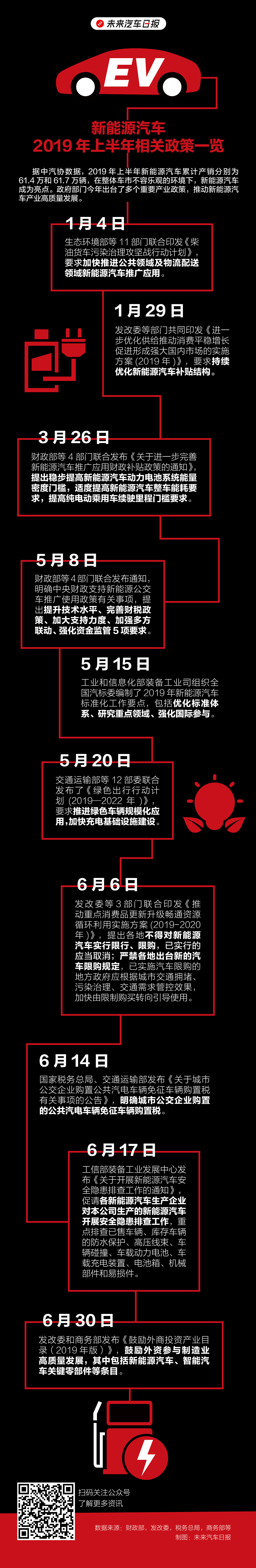 2019年上半年,政府多部门出台了多个新能源汽车产业政策,推动新能源汽车产业高质量发展。