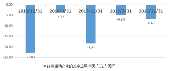 未来汽车日报(ID:auto- time)梳理财报数据发现,优信二手车面临长期无法实现盈利、业务线刚性成本支出高昂、广告等市场推广费用居高不下的高现金流净流出现状。2016财年至2018财年,优信经营活动现金流量净额持续为负,净流出规模不断扩大。