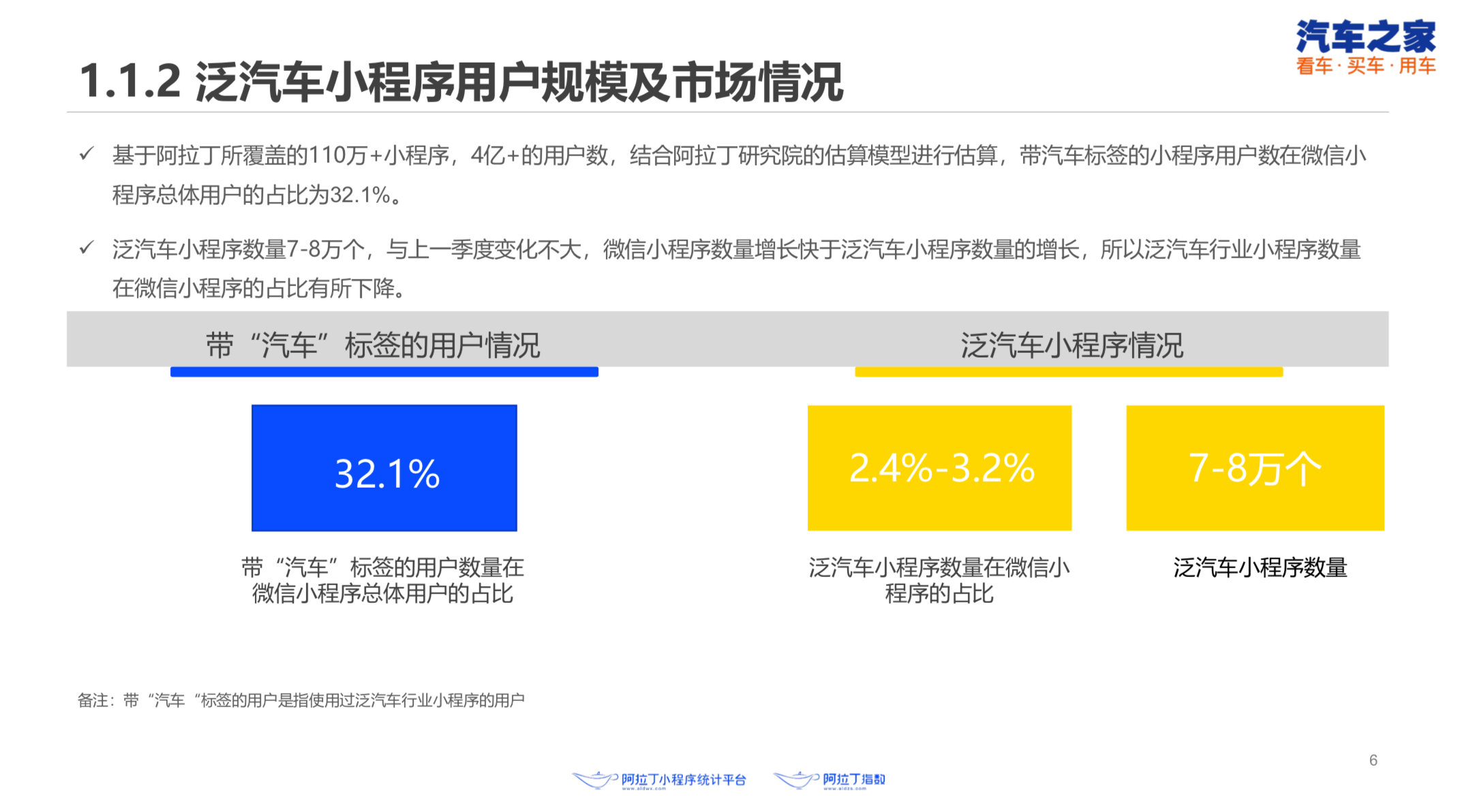 据阿拉丁统计,带汽车标签的小程序用户数在微信小程序总体用户中占比32.1%。