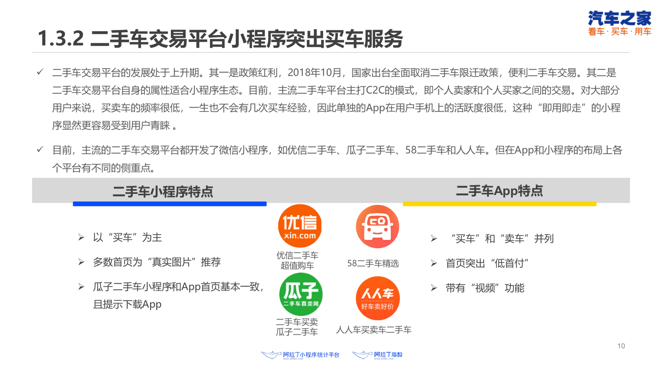 优信二手车、瓜子二手车、58二手车等主流二手车交易平台都开发了微信小程序。但在App和小程序的布局上各个平台有不同侧重点。