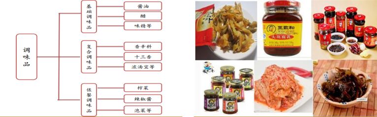 佐餐调味品:指消费者可以在主菜之外食用的,区别于一般调味品,可以直接食用,有替代或者部分替代菜肴的功能,如榨菜、泡菜等;也可以作为调味品食用,如老干妈、饭扫光等。
