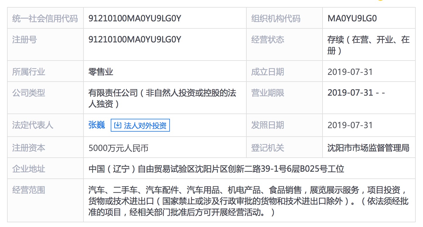 值得注意的是,华晨国贸公司注册地址位于辽宁自贸区,这或许表明华晨正在拓展汽车的进出口业务。