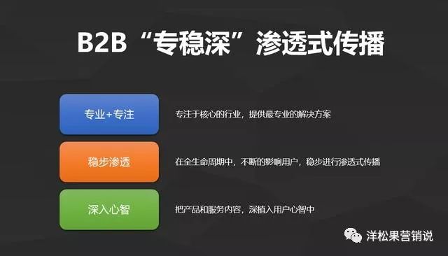这就很值得反思了,对于ToB业务来说,需要把基于企业降本增效的痛点做到足够深入,并提供针对行业的专业解决方案。首先要保证产品和业务有竞争优势,之后的营销才更有价值,“专稳深”的渗透式传播也才能给企业增长带来更好的效果。