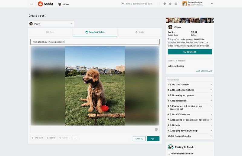 Krishna和Aradhyula的研究帮助他们做出了一组旨在打破那种感觉的新的设计选择:现在,网站有了一个更大的按钮来提醒你到哪里去发表文章。此前,对文本帖子进行格式化需要用到Markdown语言;现在他们已经增加了一个所见即所得的工具栏。之前,你没法将文字、图像以及链接整合进同一篇文章;现在,你可以把它们通通都放在一起,甚至还可以嵌入电影。新的发文流程也出现在你要发文的子版块的社区指南上面,这帮助新用户理解规则,以免自己的帖子被意外毙掉。很难想象在Reddit浸淫多年的老鸟会在意这些东西。但对于网站的新人来说,这是找到信心发出第一篇帖子,与关闭网页标签、走开,再也不回来之别。