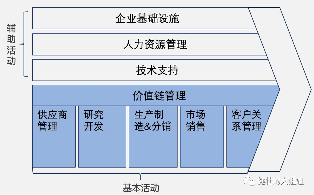 每一个企业都是在设计、生产、销售、发送和辅助其产品的过程中进行种种活动的集合体,这些互不相同又相互关联的生产经营活动,构成了一个创造价值的动态过程,即价值链。