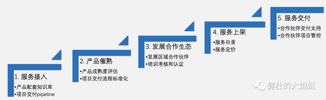 下面是我负责的产品在联合公司内其他团队的力量,完成产品服务标准化接入的全过程,包括从服务接入,到产品催熟、发展合作生态、定义服务目录和商业报价,再到服务交付的标准化。