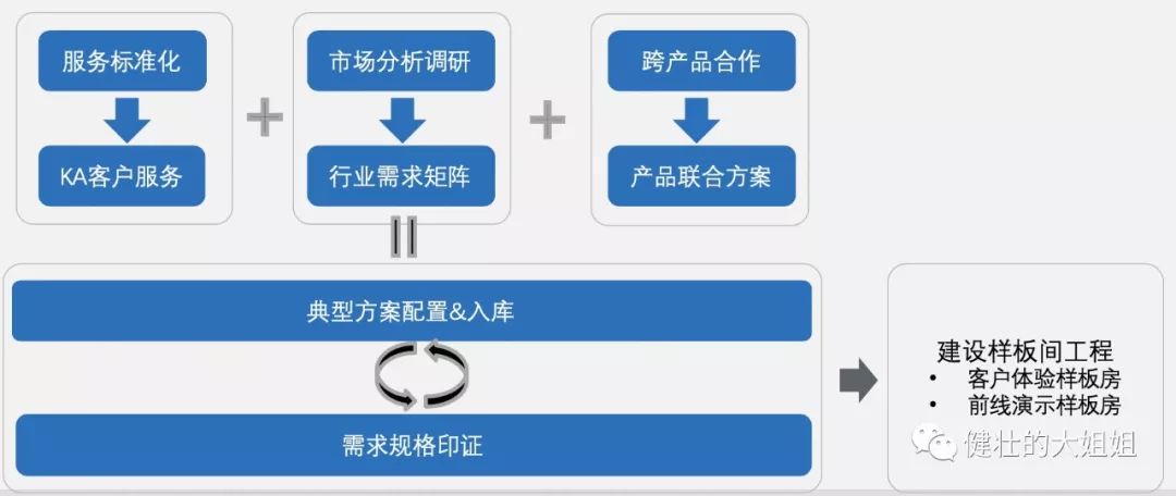 站在客户的角度去梳理本产品的销售流程和推进策略,每一个流程里需要配备的资料和工具,变更事件的风险控制和问题升级等,将整体的打法模板化和场景化。