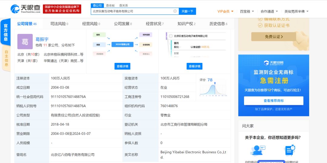 这家【北京玩客互动电子商务有限公司】的法人叫做葛振宇,记住这个名字,他会出现很多次。