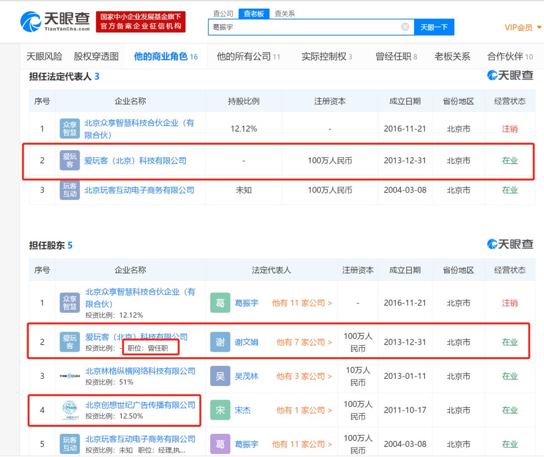 记得吗,爱玩客公众号的主体公司,叫做玩客互动,法人就是葛振宇。