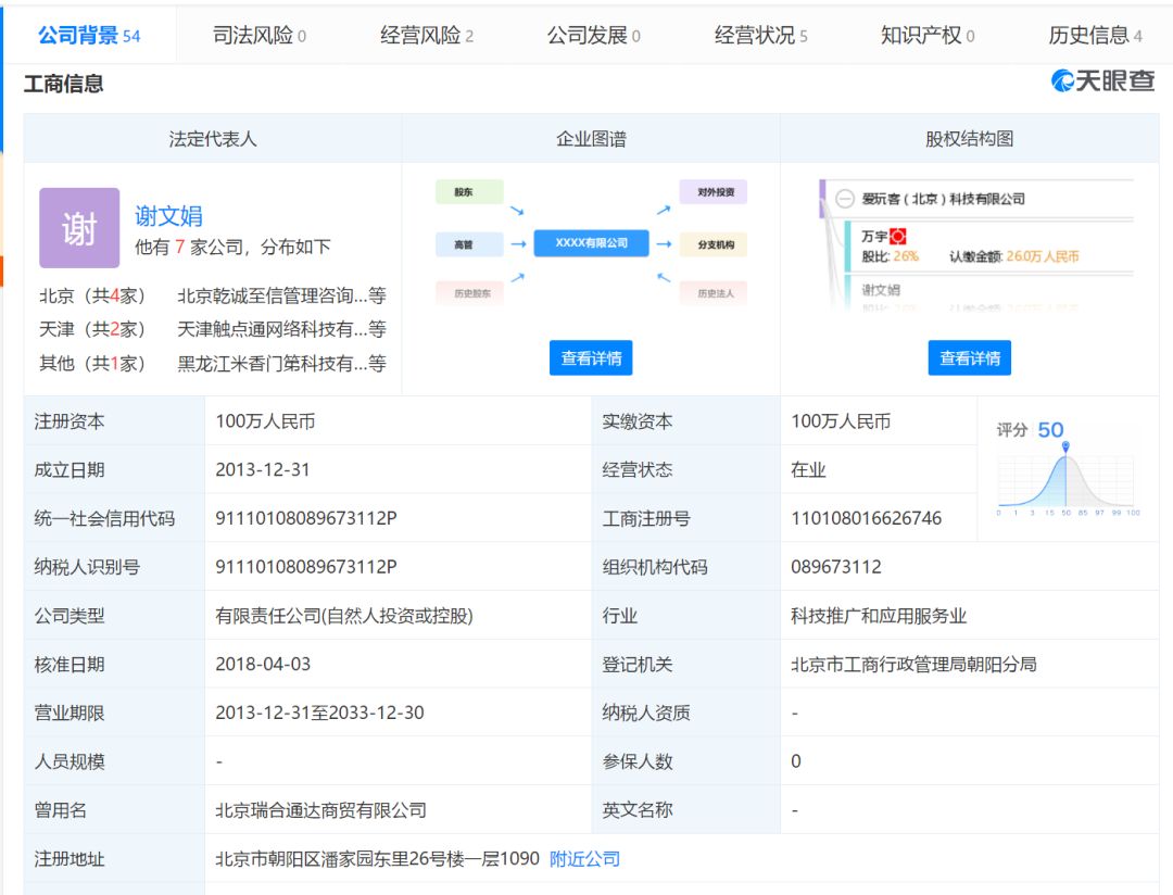 这个谢文娟,就是【爱玩客(北京)科技有限公司】的股东谢文娟。