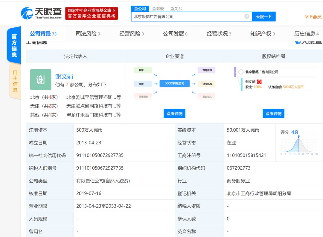 我们再看崔彤凯的其他资料,发现了一个熟悉的公司,【北京聚德广告】。
