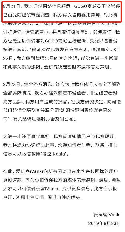 大家仔细看上图中的爱玩客在8月23日的声明中,多次提及曾磊,表示其嫌疑很大。