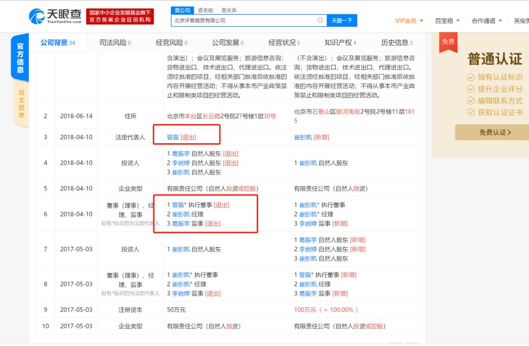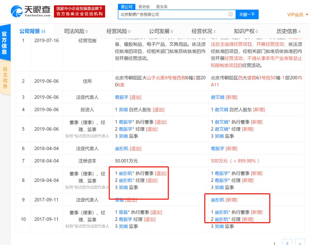 查一下这家公司,可以发现一些事情,这家公司现在的法人叫做崔彤凯,但曾经不是。