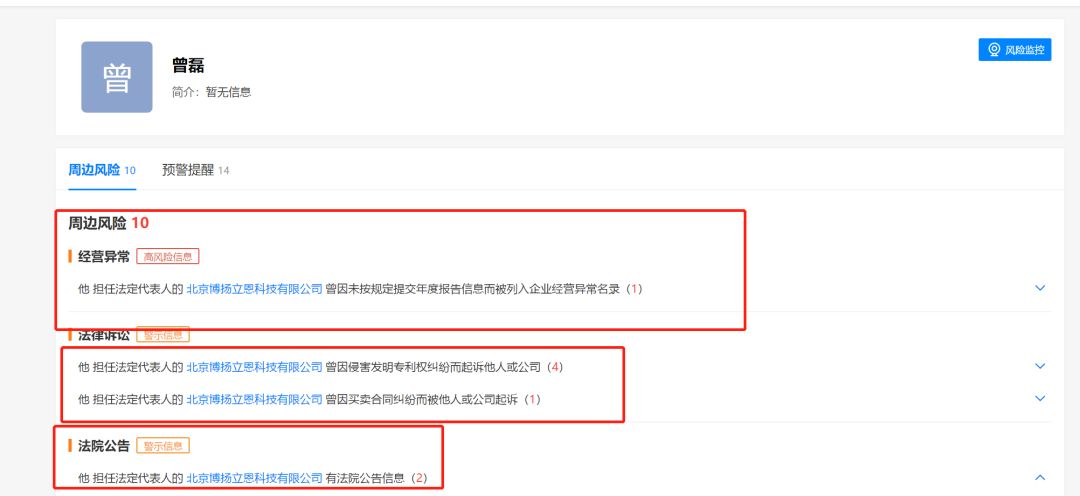 我们再来看曾磊这个人,他还是一家叫做【北京博扬立恩科技有限公司】的法人及股东,这家公司已经被吊销了。