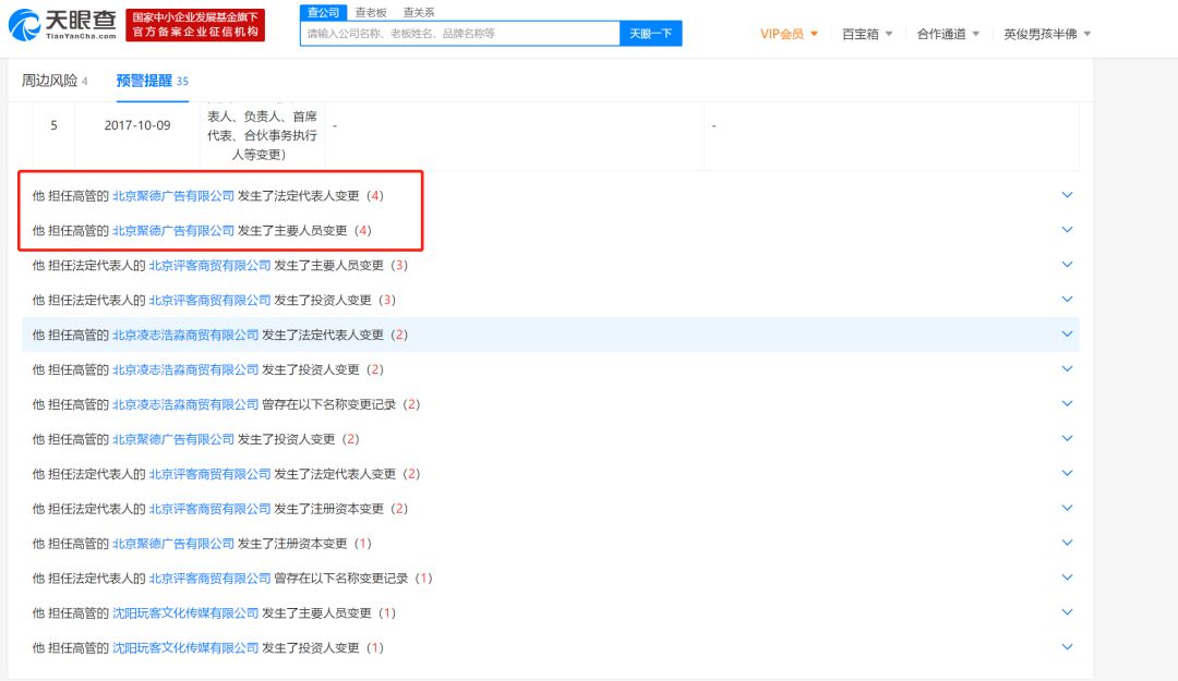 这里出现了2家比较显眼的公司,一家是【北京创想世纪广告传播有限公司】,一家是曾任职【爱玩客(北京)科技有限公司】。
