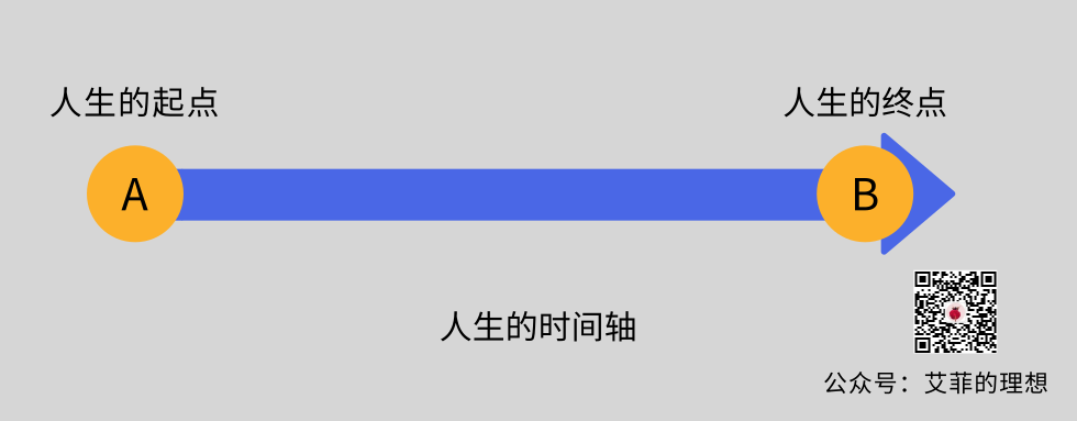 于是,就有了下面这幅图,A是人生的起点,B是人生的终点,每个人从出生之日起,就一直在走向人生的终点。