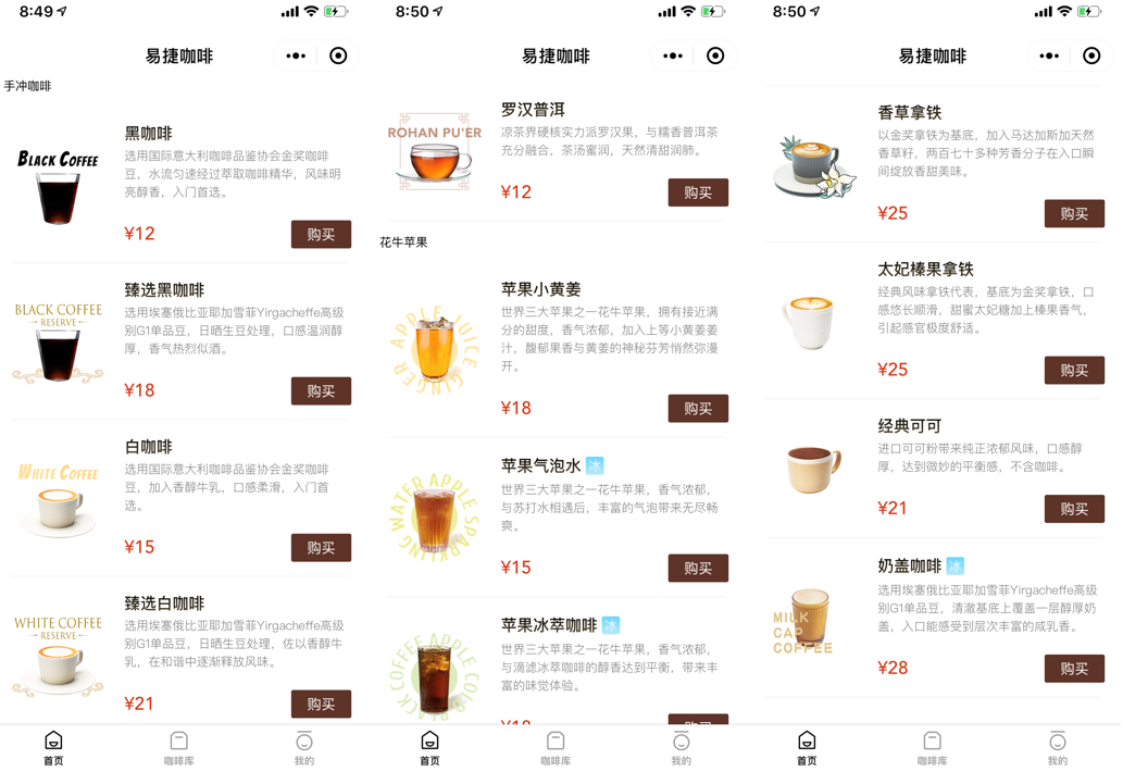 易捷咖啡点单界面