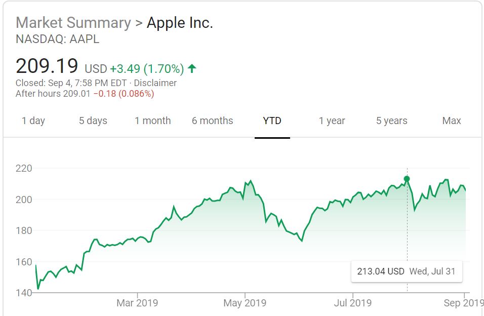 苹果股价在今年两次财报发布后都出现了大幅下滑,在新机发布后股价会如何?数据来源:NASDAQ