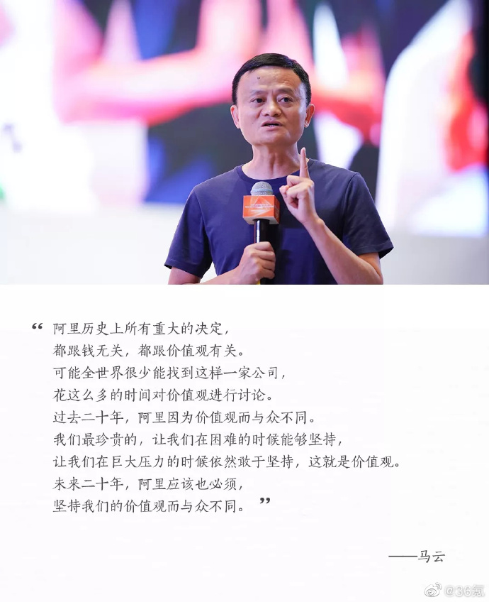 马云:未来的20年,阿里将因坚持价值观而与众不同