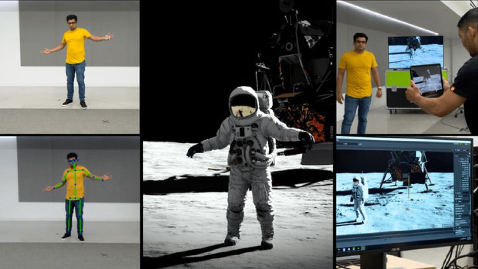 在NVIDIA的展会现场,个性化的 “登月之旅” 体验项目(Moon Landing)吸引了众人的眼球。正值阿波罗11号登月50周年,NVIDIA运用RTX GPU重新创造了一次别开生面的实时登月体验。通过摄像头捕捉姿态后,体验者会与经过3D渲染后的宇航员角色相匹配,通过 实时光线追踪 渲染各个细节。之后将其与开发式协作平台Omniverse相结合,即时生成逼真的3D影像。