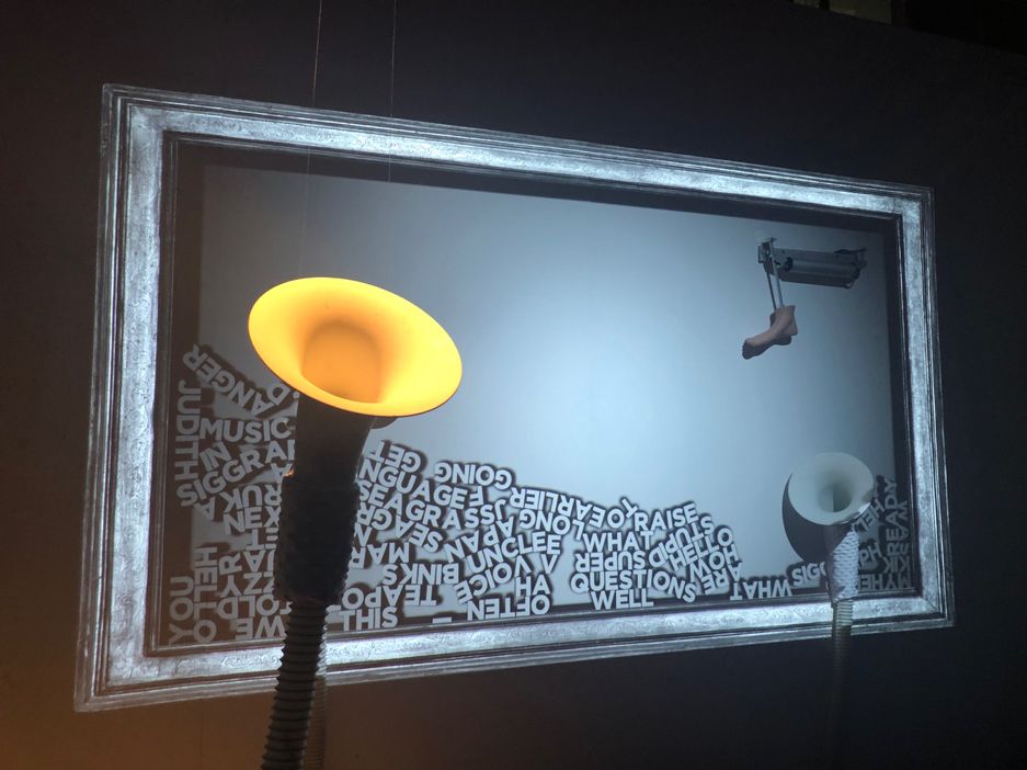 参与者对着话筒说的任何话会被即时转化成文字。如果文字若掉入右下角的听筒中,会被念出来。若文字不幸碰到了右上角的脚,则会被“踢”回来。这件有趣的装置探讨了 虚拟与现实间的交互 ,让我看到了 声音可视化 的另一种有趣的应用。如果周星驰在《九品芝麻官》里对着大海练口才的场景中运用这件作品,场景会更壮观呢!