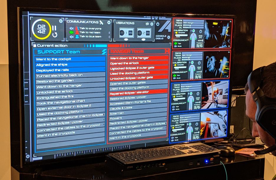 这家来自法国的公司可谓是我本次的意外收获。高水准的虚拟现实游戏影像,有趣的游戏设计和社交元素,身临其境般的体验,OZ沉浸式游戏系统让人眼前一亮。