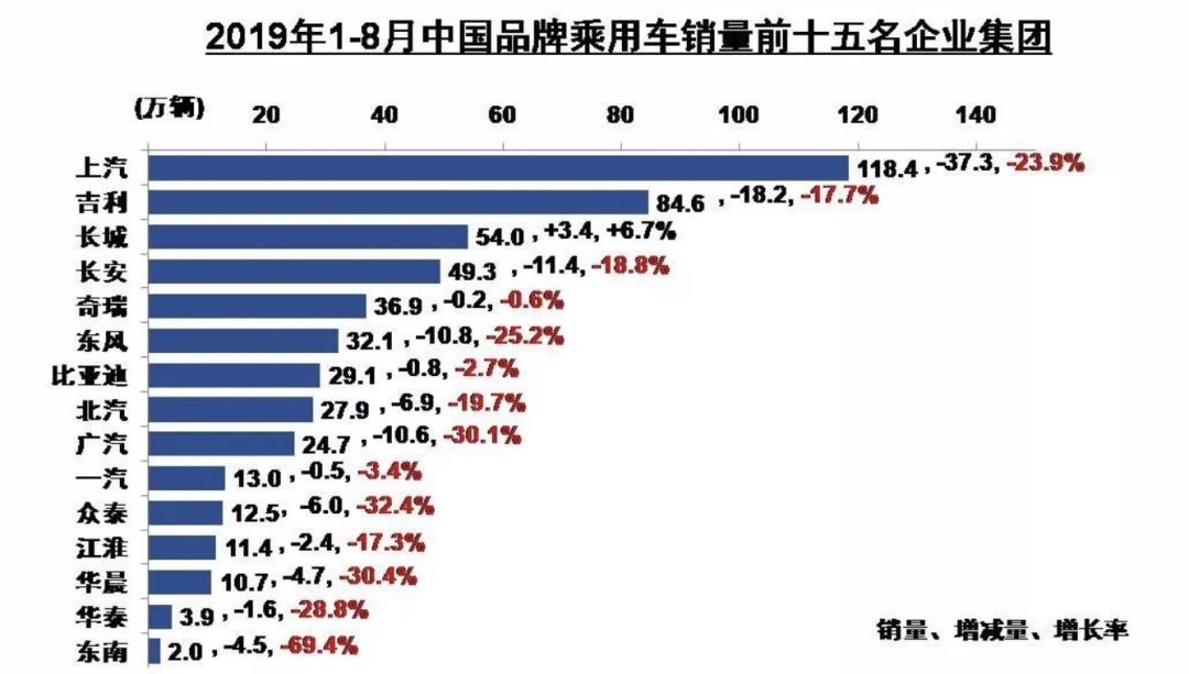 “中国汽车正处于转型升级之中,优胜劣汰更加明显,中国汽车品牌的50%将在很快一段时间不复存在。”长安汽车副总裁谭本宏在2019全球汽车产业创新大会上曾公开表示。中国汽车流通协会副秘书长郎学红也曾在接受财经采访时透露,今年9月销量同比降幅将扩大至两位数,全年整体销量大概率负增长,中国车市开入周期性低谷,周期或达3年以上。