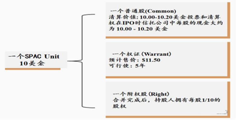 上市发行的是SPAC单位,包括SPAC普通股、SPAC权证、SPAC赋权股。其中,SPAC权证又叫SPAC认证股权,SPAC公众投资者按事先约定价格买入并购新公司的股票。这样,SPAC公众投资者行使SPAC认股权后可获得无风险套利。
