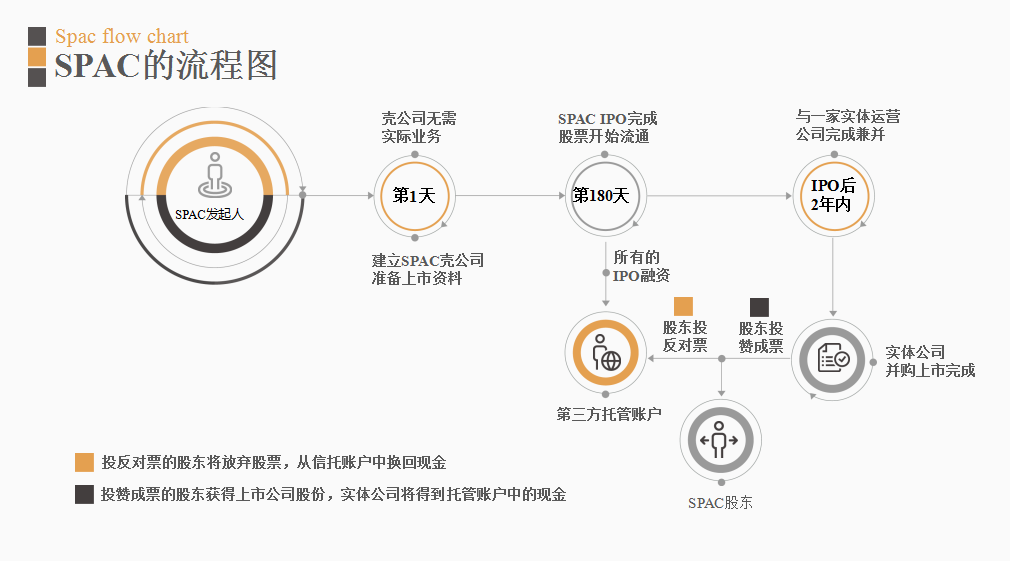 通常的操作是,首先在美国设立一个SPAC特殊目的公司,这个公司只有现金,没有实业和资产,这家公司存续的唯一目就是投资并购欲上市的目标企业。