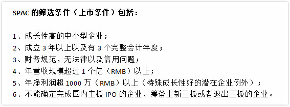 当然也不是所有的公司都可以借助SPAC上市了,大致的筛选条件可见下图: