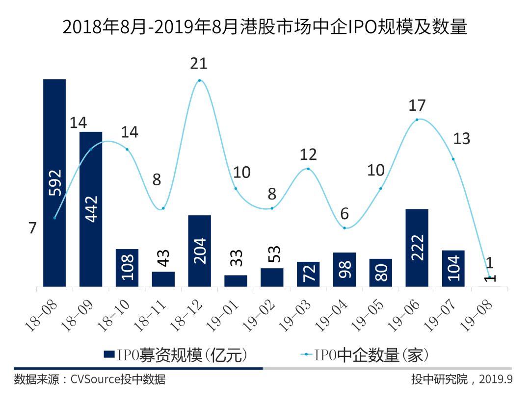 图表 42018年8月-2019年8月港股市场中企IPO规模及数量