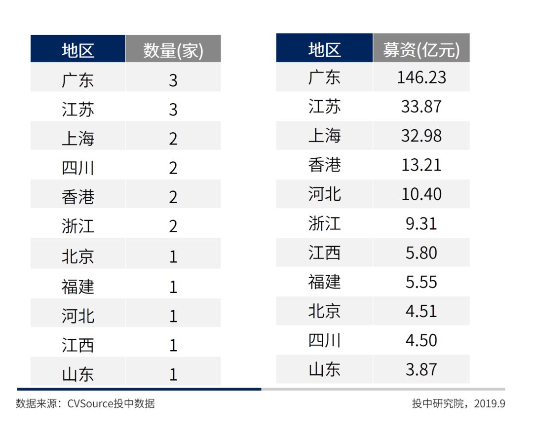 表格 3 2019年8月中企IPO数量及募资规模地区分布表