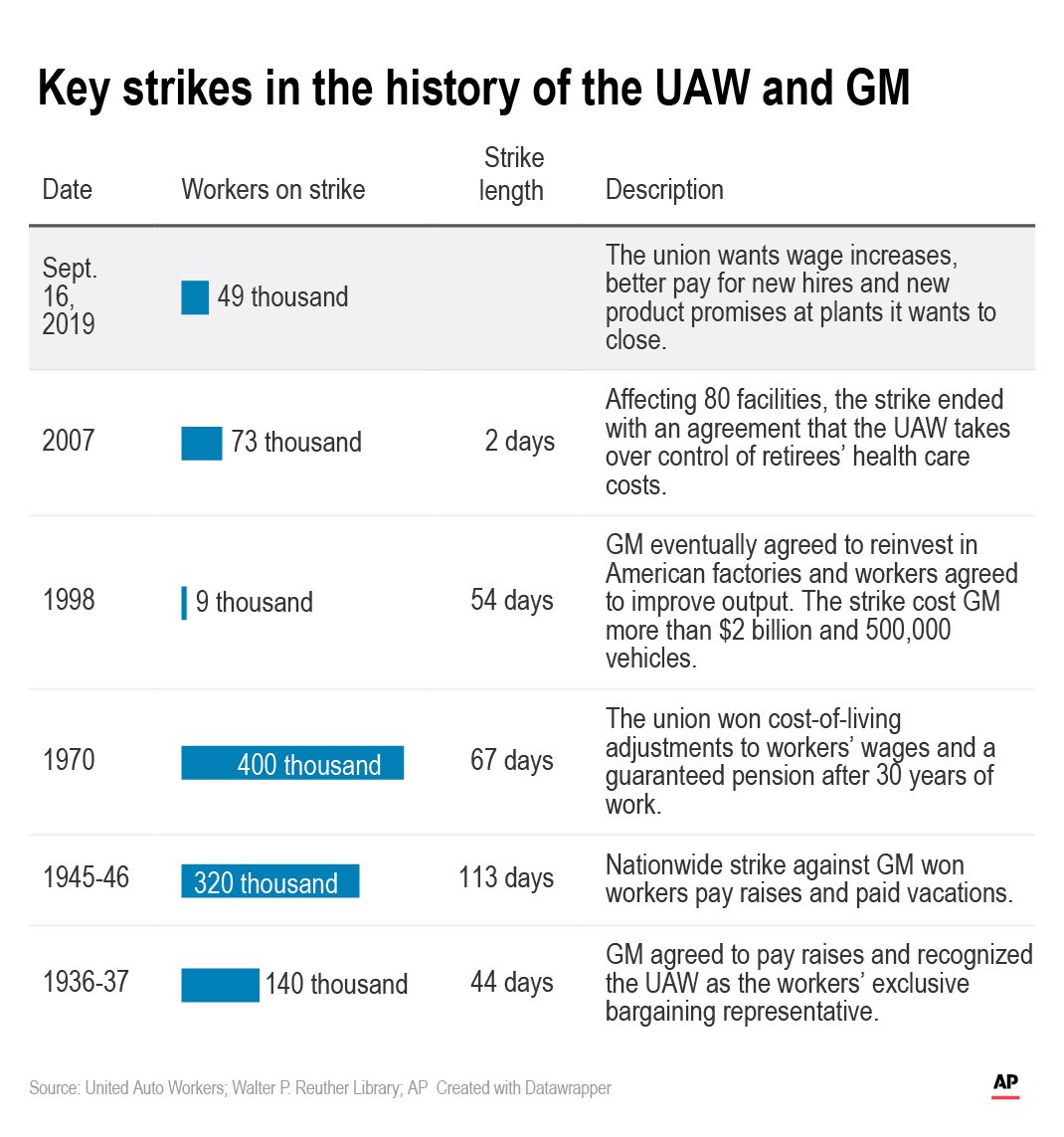 通用汽车历史上主要罢工事件汇总图源:美联社