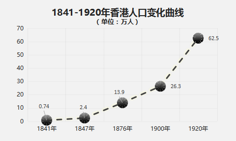 1850年代,中国华南地区爆发连串变乱,广州及附近城乡许多居民逃难至香港。5年间人口增长一倍。而至1876年,香港人口已发展到13.9万人,20年间增长了6倍。1900年人口达26.3万。1920年62.5万人。