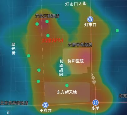 正门南边的大路是长安街,沿线排列着东单、王府井、西单商圈。从整个东城区看,各类POI密度都很高。辖区内人口80万,平均居住人口密度约2万人/平方公里。