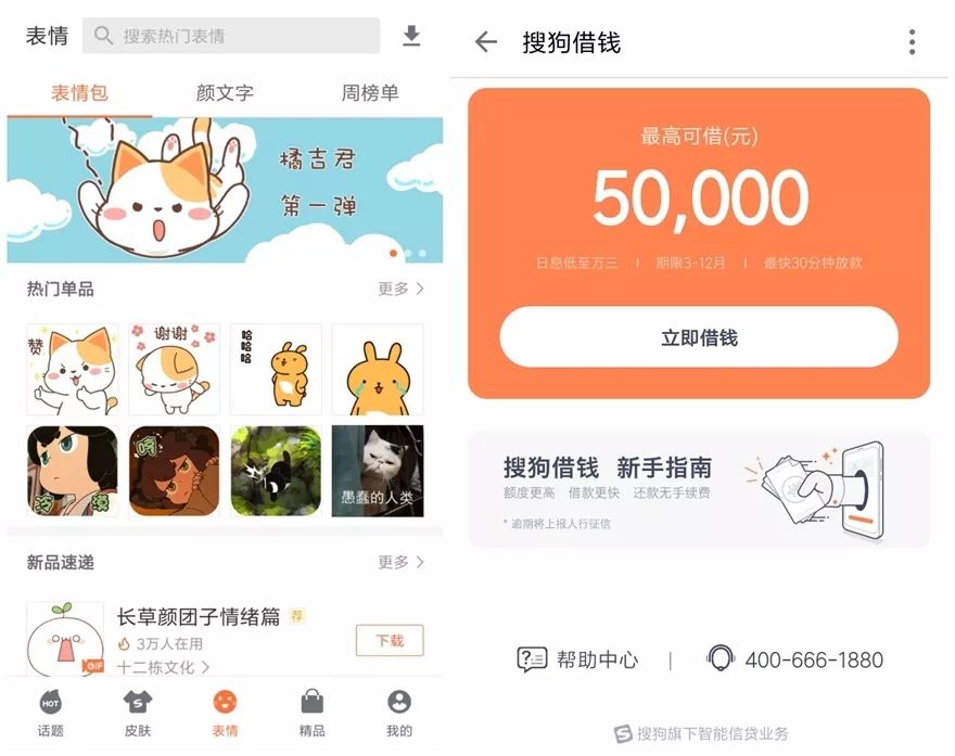 紧接着,我们进入搜狗输入法App,虽然它的功能够丰富,有资讯、表情、皮肤、应用商店,甚至理财与借贷,但依然没有找到小程序。