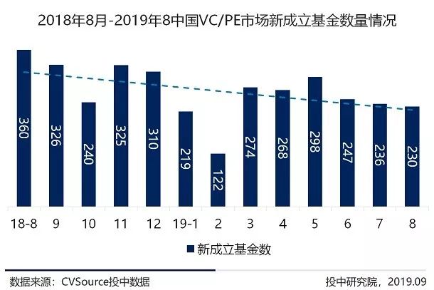 8月VC/PE市场报告:新成立基金数量缩减36%,创投交易额下跌近六成