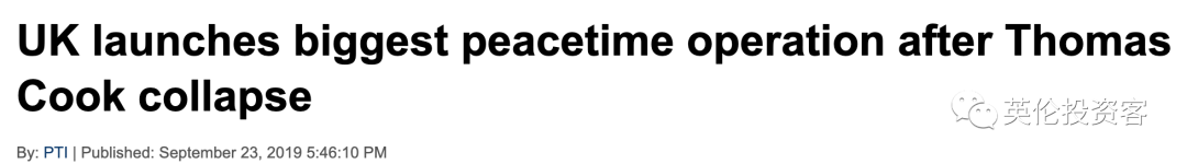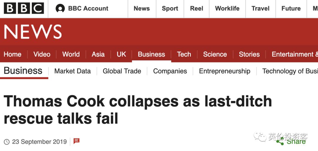 2019年9月23日,英国最大旅游集团Thomas Cook突然发布声明,宣告公司即刻破产。