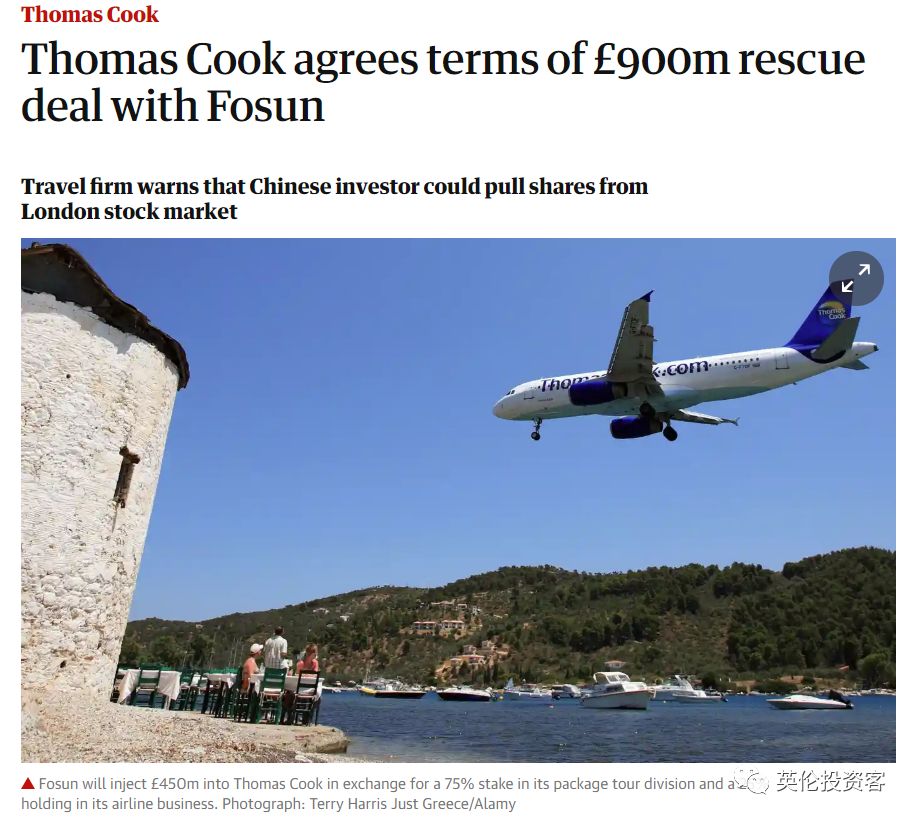 相当于复星和银行债主一共出资9亿英镑,救下Thomas Cook。