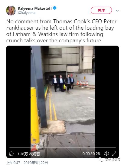 最终,谈判无果而终,Thomas Cook总裁Peter Fankhauser离开会议地点时未发表任何评论,当被记者问及是否对被困在国外的客户有任何消息时,他也全程保持沉默。