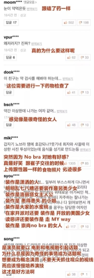 韩网“Naver”对于雪莉po出照片的新闻的评论留言