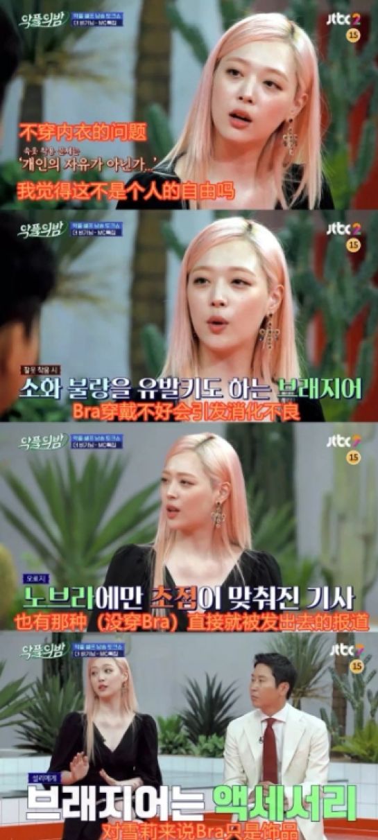 雪莉在JTBC2综艺《恶评之夜》上回应No bra争议