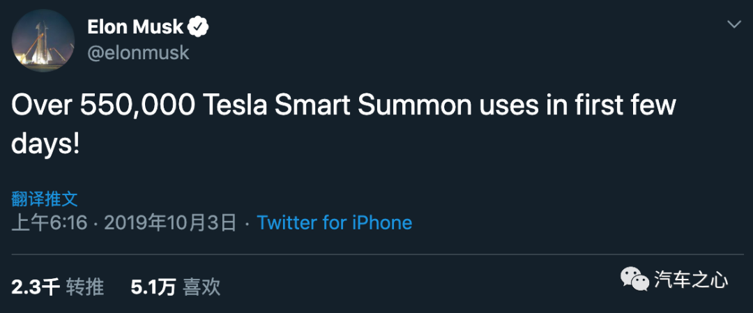 10 月 3 日,特斯拉 CEO Elon Musk 发推文称,特斯拉用户已经使用智能召唤功能超过 55 万次,现在的数据可能已经达到 100 万次。