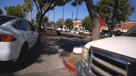 这位车主并非是唯一遇到这种情况的,上面视频中的 Model 3 显然也不太擅长「钻洞」,所以只能卡在两辆车前踌躇不前。但对人类来说,这样的情况简直小菜一碟。
