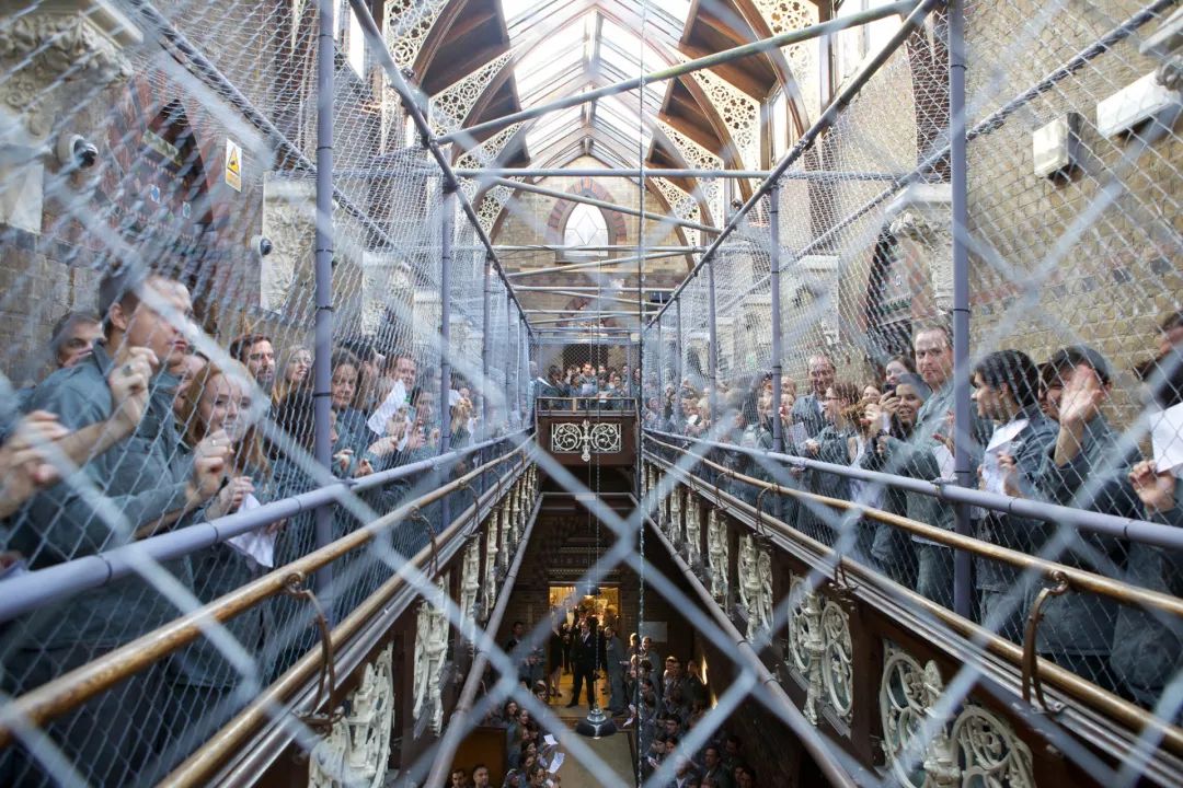 既然是营造视觉, 建筑就成了载体——场地的选择通常为整个体验设计奠定了基础。 《飞跃疯人院》在秘密影院版本中选址在一座破旧医院;《肖申克的救赎》则有两处地点,一处是Bethnal Green图书馆改造的法庭,一处是旧学校改造的俄亥俄州改教所,中途由断电的巴士载送犯人(即参与者);《回到未来》是 Riggall 口中他们的 “第一部大制作”,片中虚拟小镇Hill Valley的选址是伦敦奥林匹克公园,空间内隐藏了充足的秘密通道能让参加者来回"穿梭时空"。