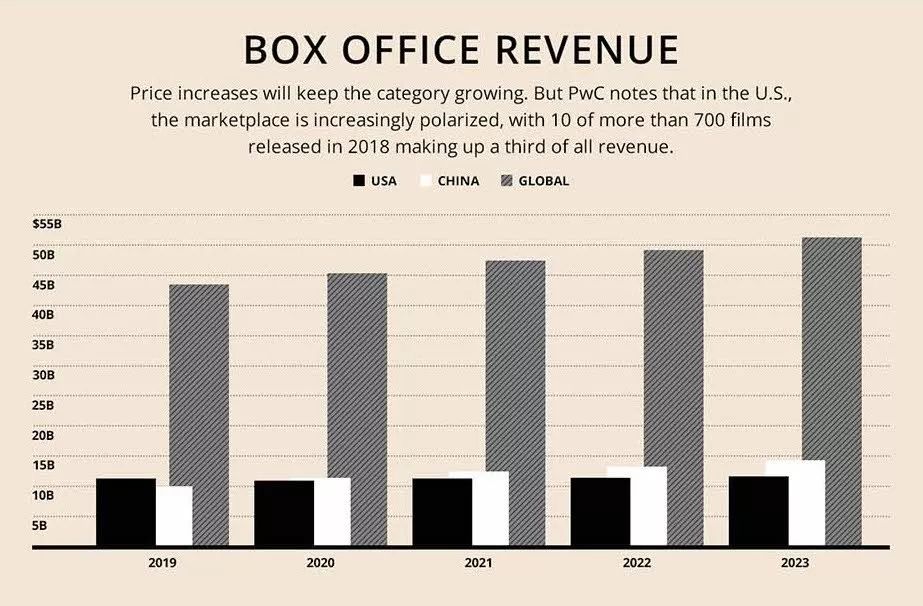 作为即将成为全球第一票房市场的中国便成了 “秘密影院” 扩张的首要目标。根据普华永道预测,到2020年, 中国票房销量将以122.8亿美元超越美国,占据世界电影票房的主导地位。