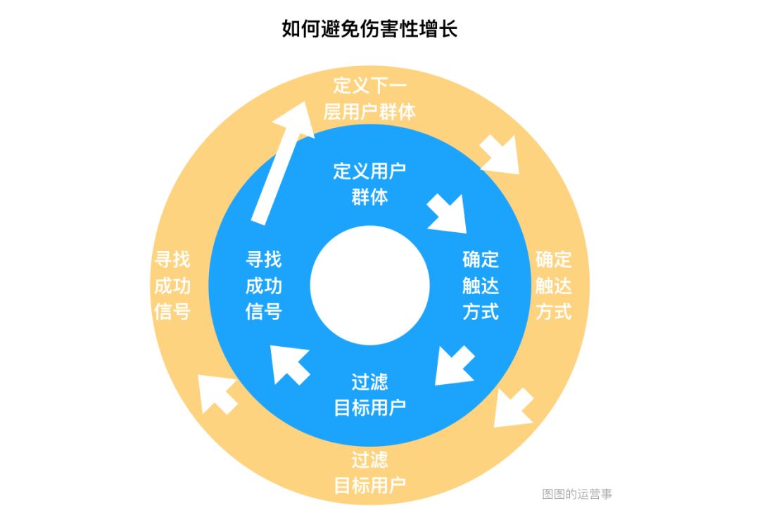 避免伤害性增长是要制定一个流程,让产品循序渐进地适应不同用户群体,最终达到 PMF。